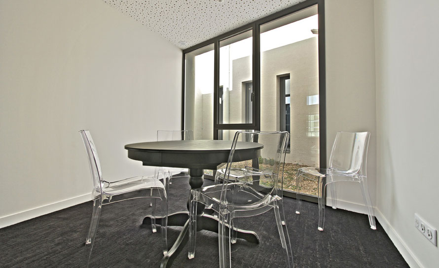 Dans cet espace de sérénité, la famille pourra au cœur du bâti profiter de la lumière zénithale du patio pour y préparer le protocole funéraire souhaité.